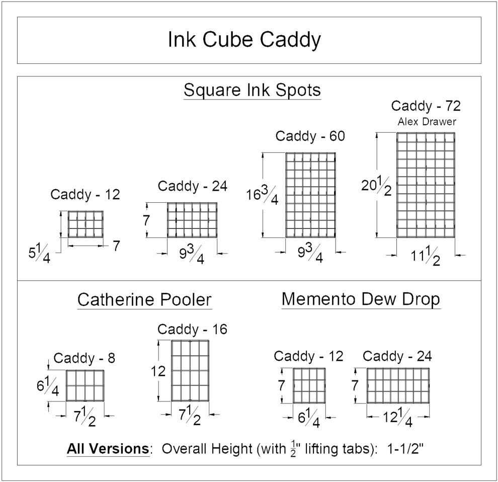 Almost off of my inks are the cube size, so I ordered two of the 60 count caddies. I absolutely love them!!! I can now look at 60 colors at one time. I replaced 5 other containers with these two, and they stack so I am saving space. In fact, it will not be long before I will need to order another one.