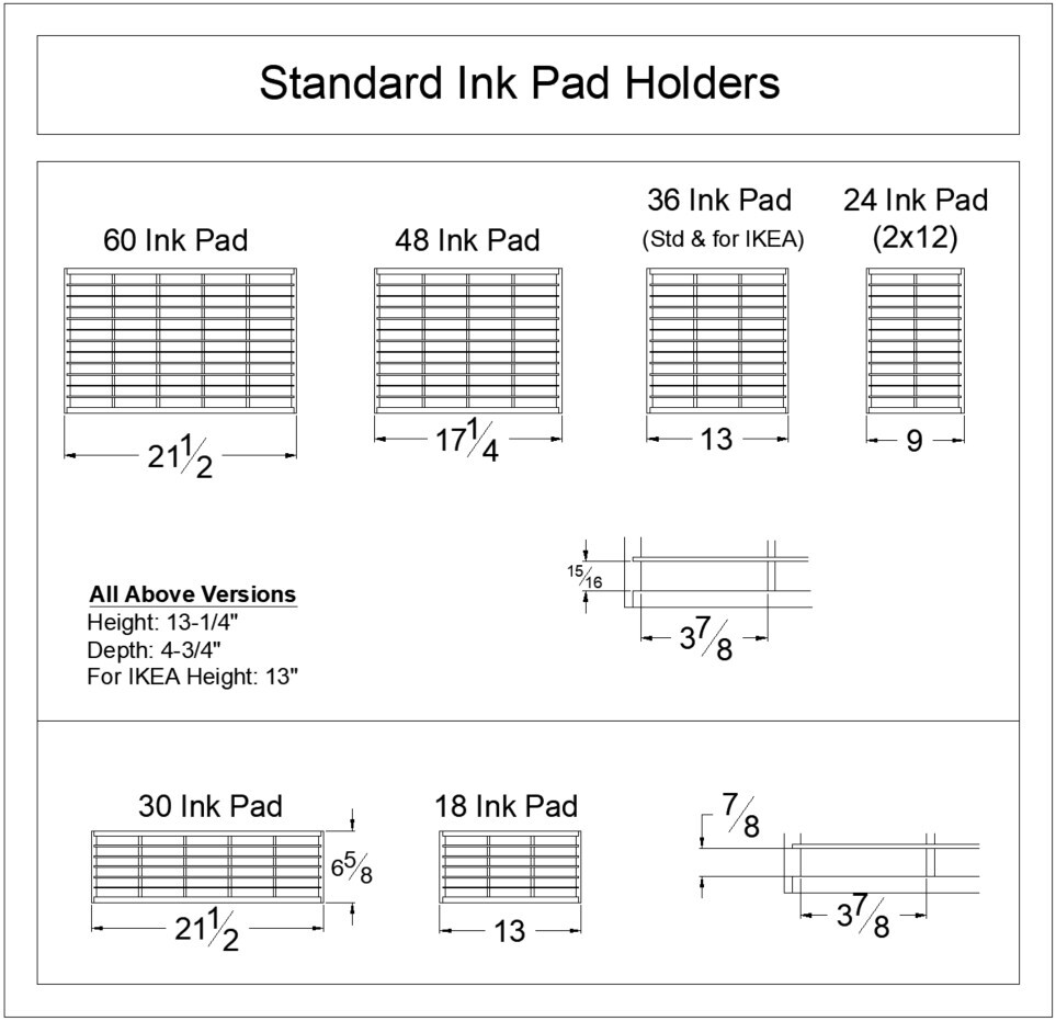 I'm so excited to have my new ink pad holders! I bought a 60 and a 30 to hold my 60+ ink pads and give me room to purchase more colors in the future. I love that it came ready to finish and was sanded smooth. I also love the video explaining how to create spacers so that the ink pads are aligned at the front of the spaces regardless of brand of ink pad. I also LOVE that this is made in America (and Minnesota at that). Thank you so much for this sturdy, quality product!