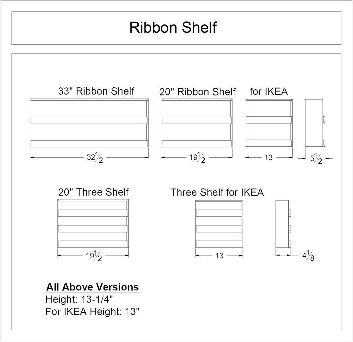 With two rows for storage, the 20" Ribbon Shelf has over three feet, and the 33" Ribbon Shelf has over five feet of shelf space to organize your ribbon spools up to 5" diameter. You can even choose the for IKEA® option to organize your ribbon in the IKEA® Kallax shelving unit.